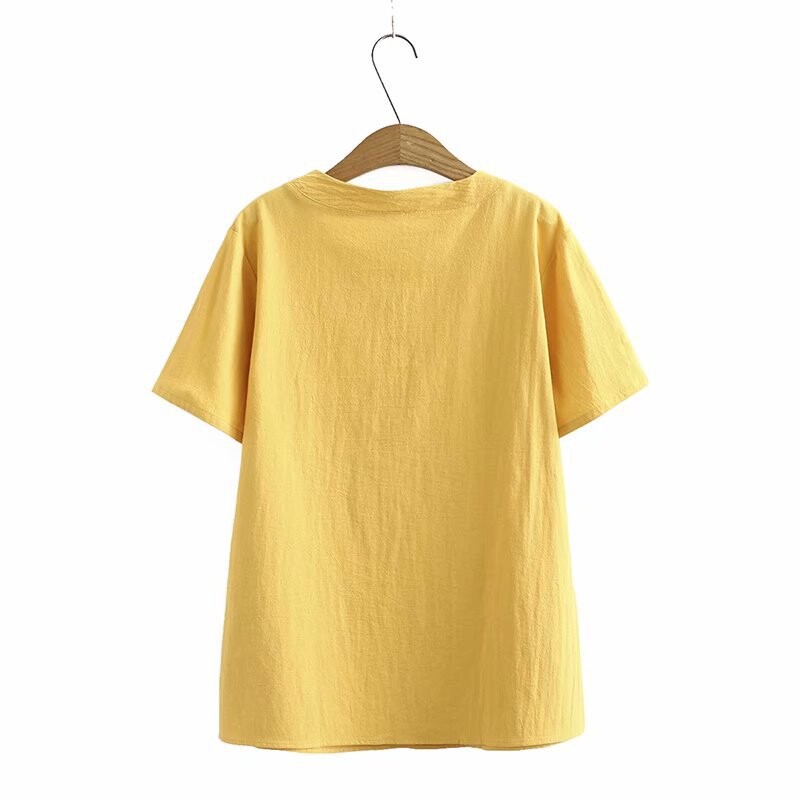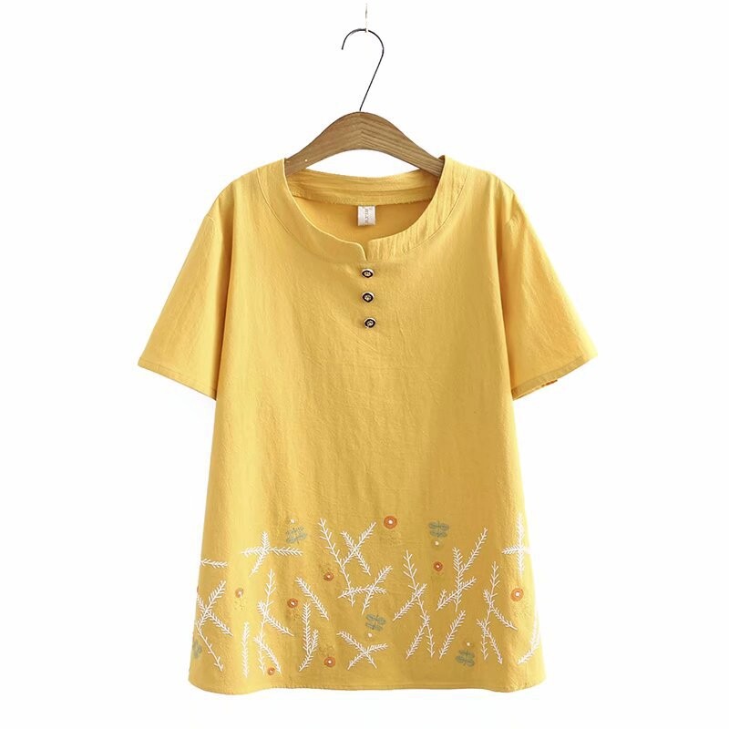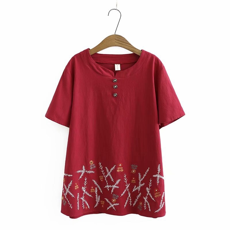 Plus Size White Red Women's Flower Embroidered Shirt Short Sleeve Summer Shirts Vintage Tops