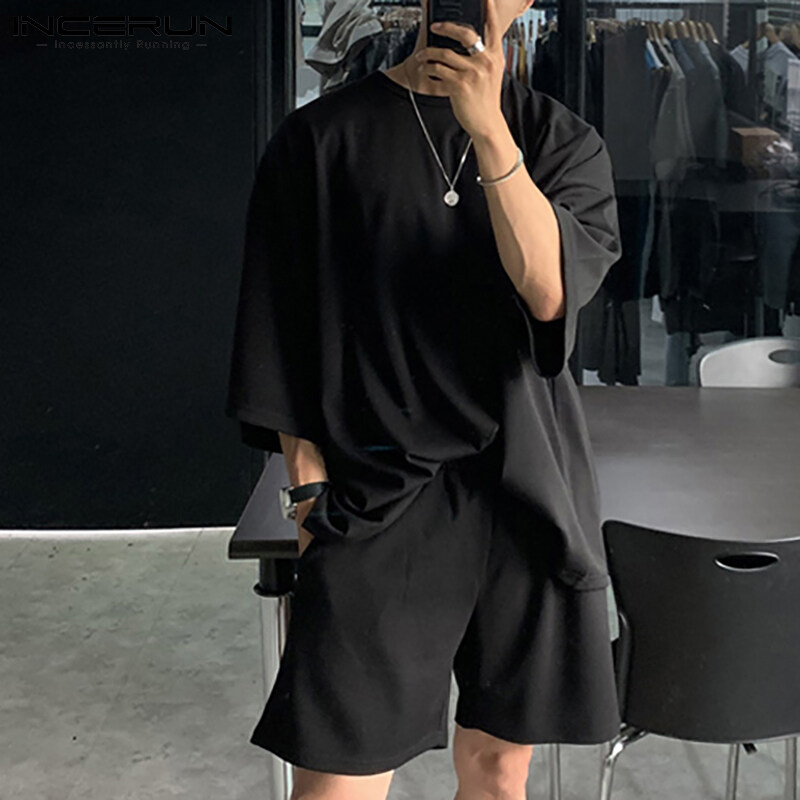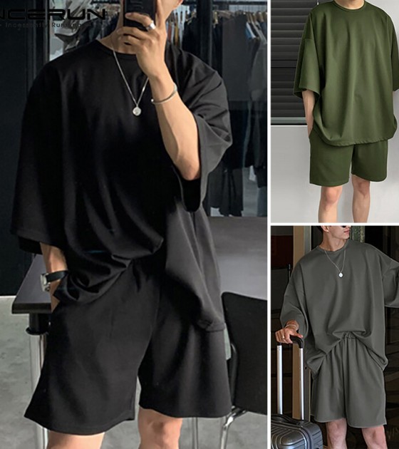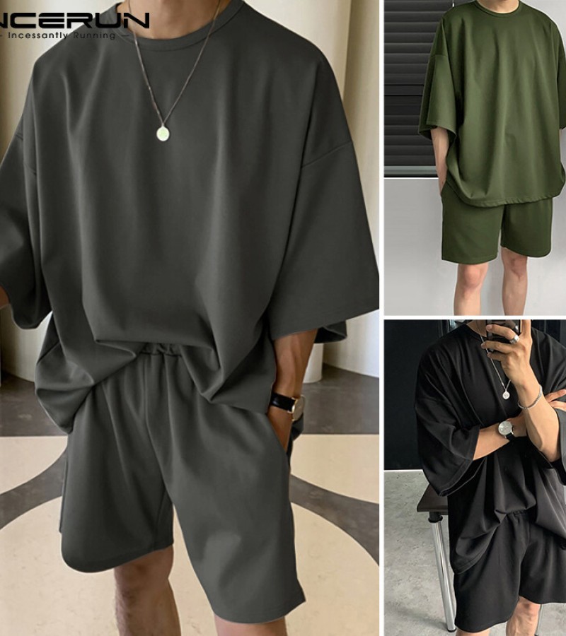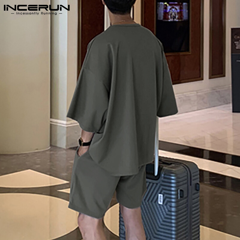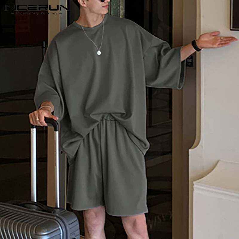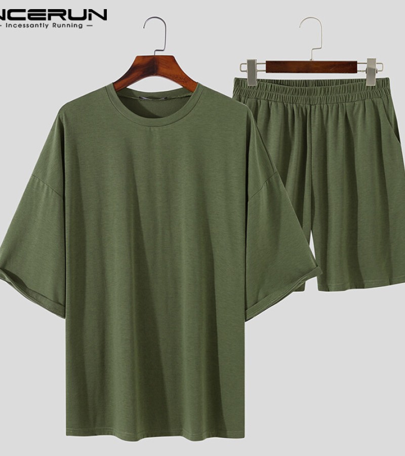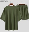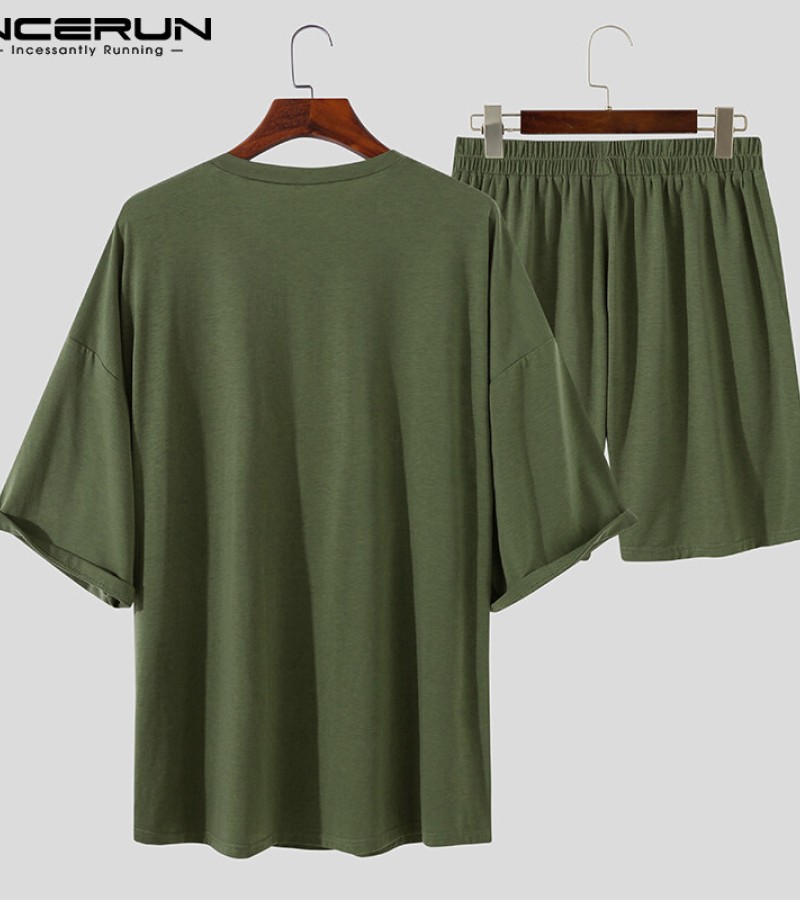 Beehoo INCERUN Mens Short Sleeve Soft Pajamas T Shirt Shorts Suits Sleepwear Suits Lounge Sets
