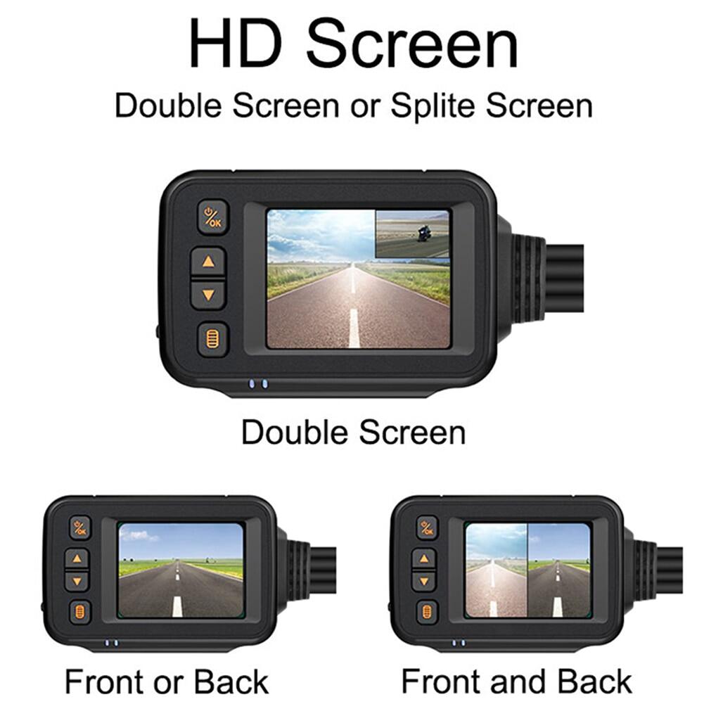 EKLEVA Waterproof 1080P Motorcycle Dash Cam 2 inch Display Front + Rear Dual Channel Motorbike DVR System with G Sensor Parking Monitor
