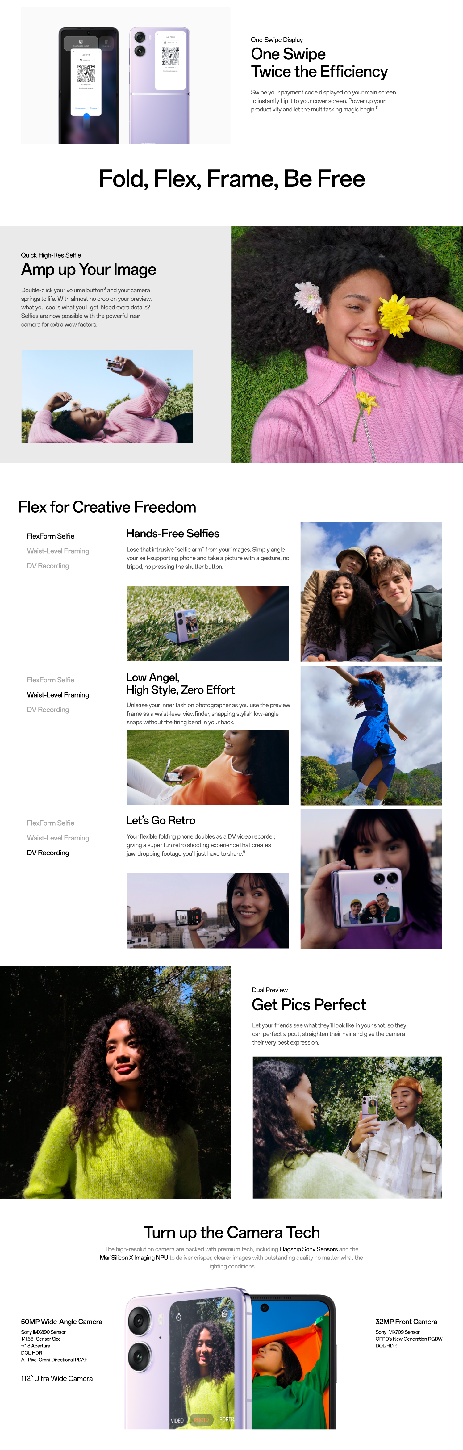 Discover the tech-savvy, style statement phone that lets you see more in a snap. The larger cover screen expands your view with innovative features, whilst the foldable design reimagines photography possibilities, all in a gorgeous and flawless design that you can pop in your pocket.