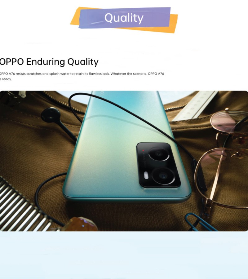 OPPO A76/人像散景相机/90Hz彩色打孔显示器/5000mAh电池/6GB RAM+128 ROM