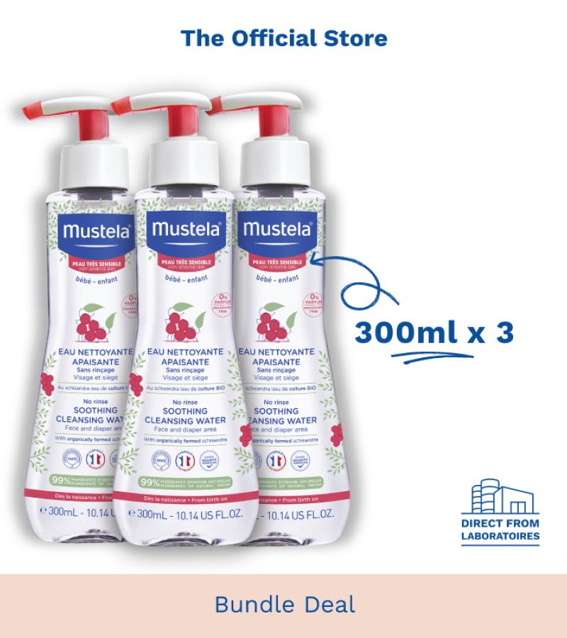 [Mustela捆绑优惠]舒缓免冲洗清洁水(无香味)300ml(有效期06/2025)[敏感肌肤][尿布更换护理]