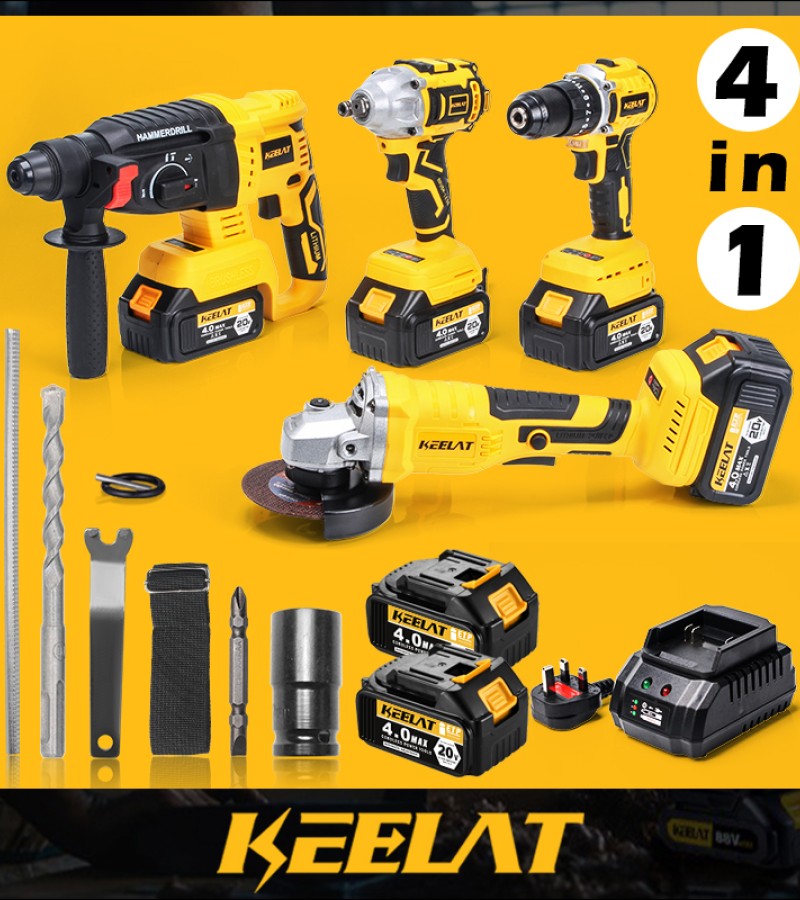 Multi-functional suit combination in one box which including Electric Wrench/Electric Drill/Electric Rotary Hammer/Angle Grinder,work together to make efficiency faster.