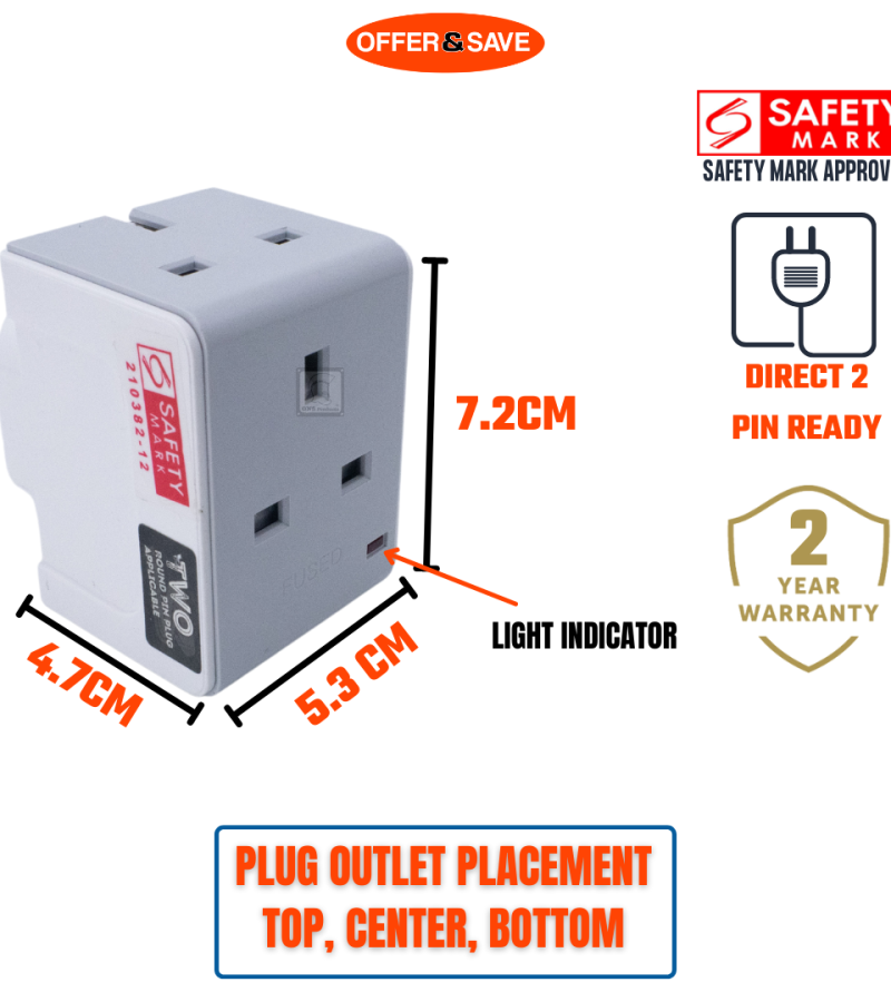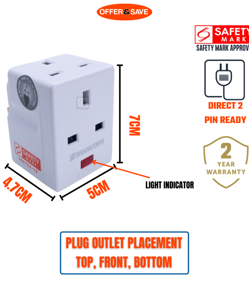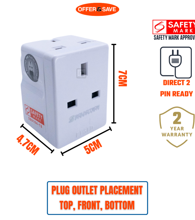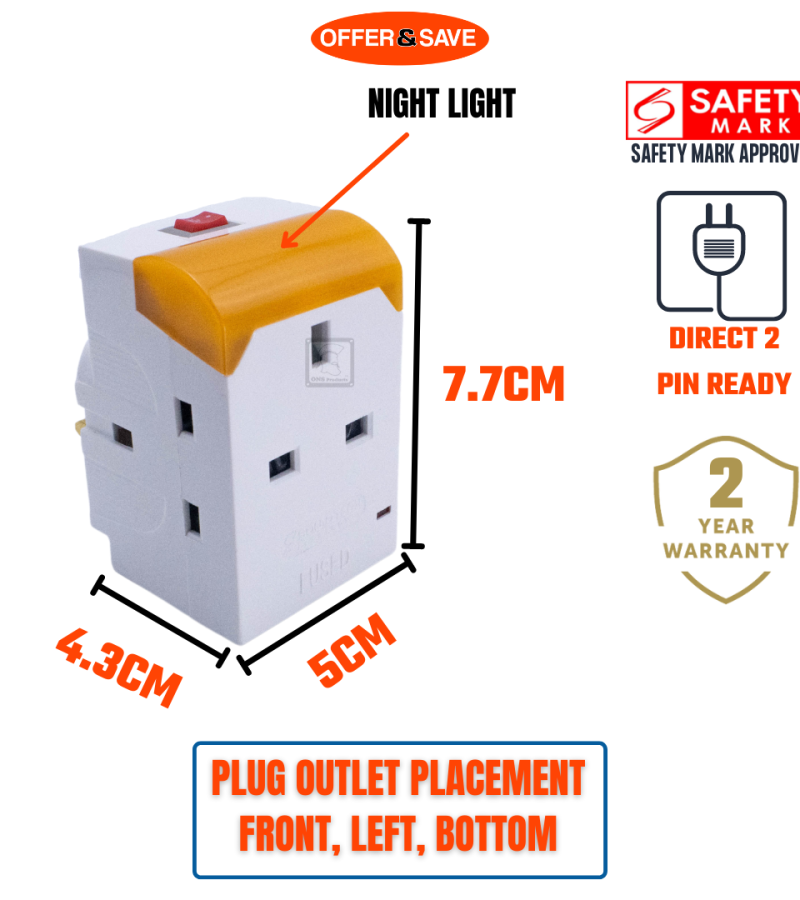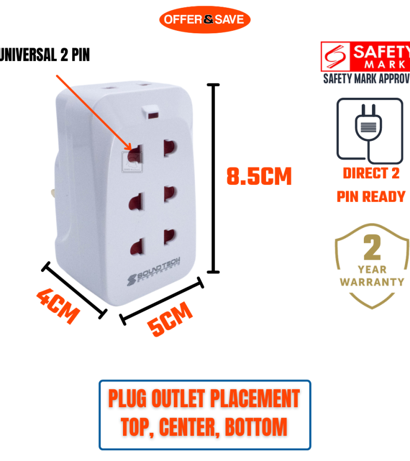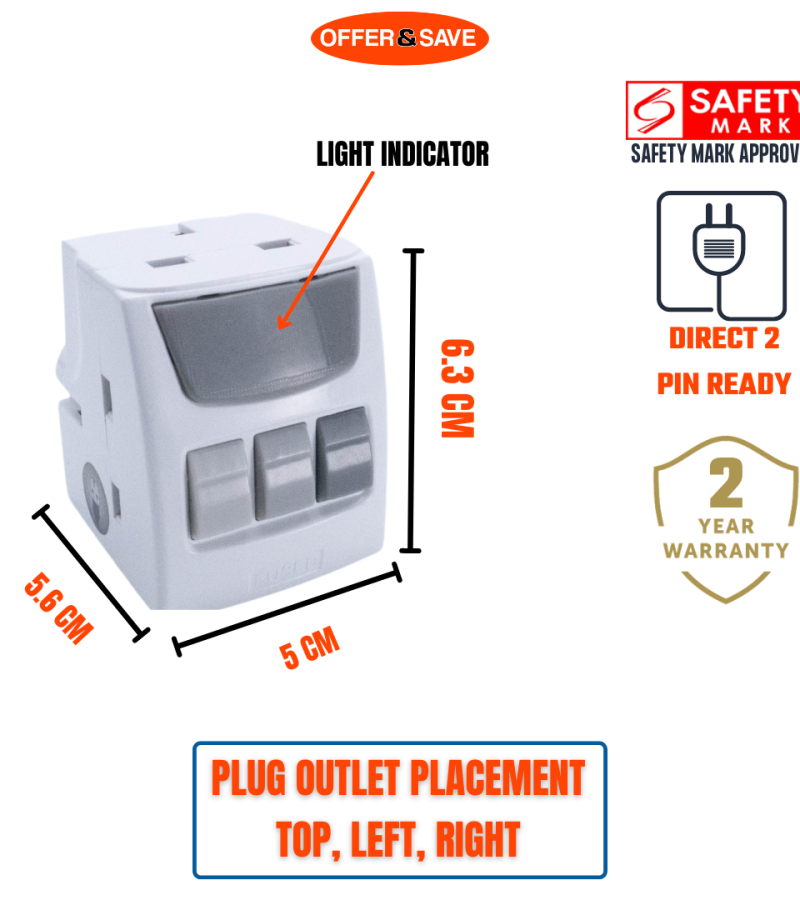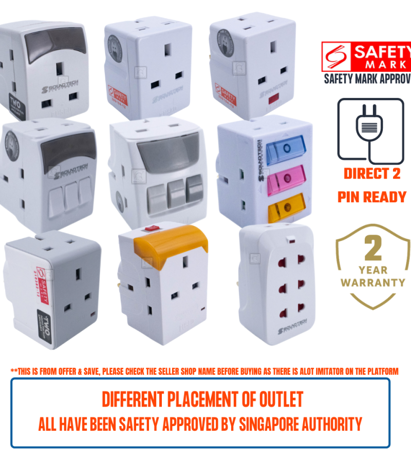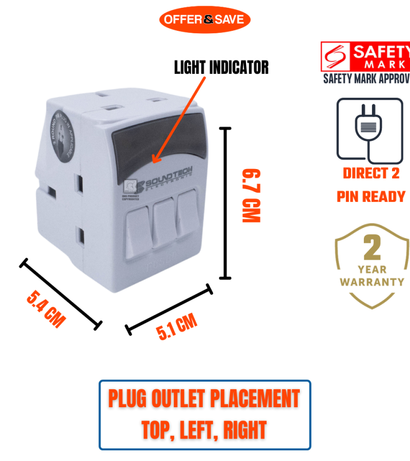 [2年保修]Soundteoh 3路多适配器插头,带开关,带开关按钮