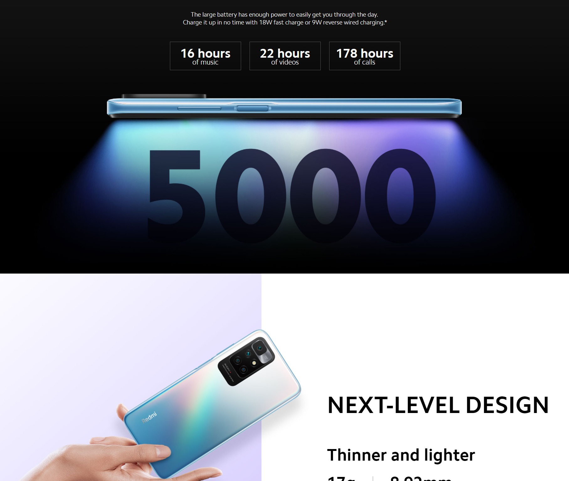 • 18W fast charging