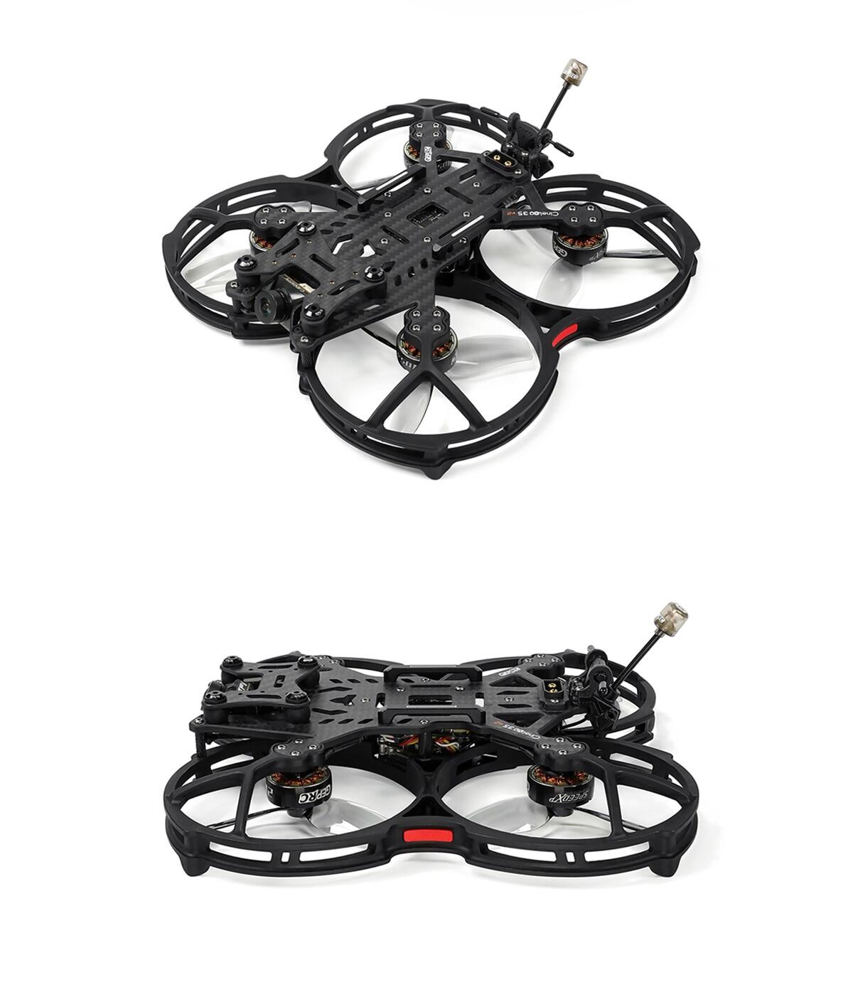CineLog35 v2 version integrated with O3 VTX. The CineLog35 V2 version of the main carbon plate and injection protection frame increased the 7075 aluminum column for structural strengthening.