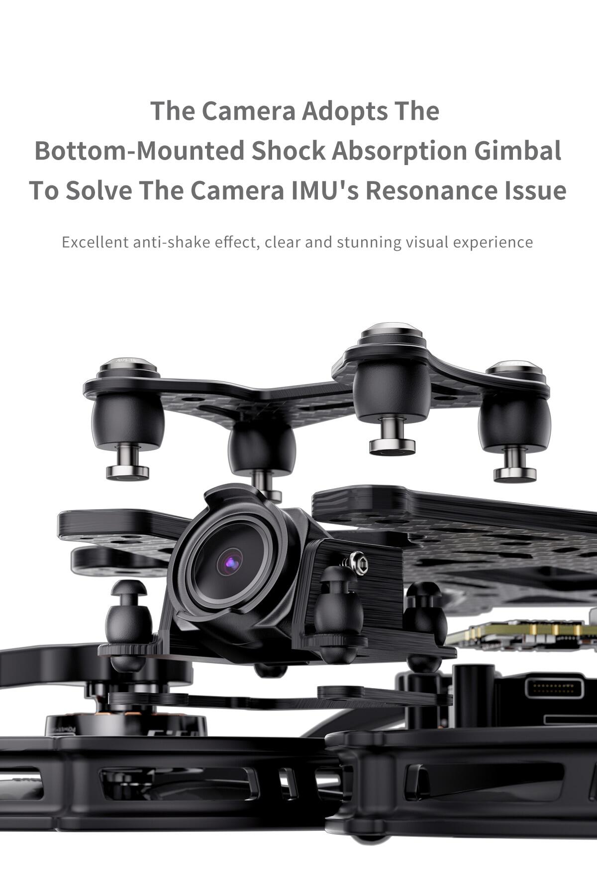 4. For O3 camera design independent under hanging shock absorption gimbal, to solve the camera IMU resonance issues, to achieve the optimal anti-shake effect.